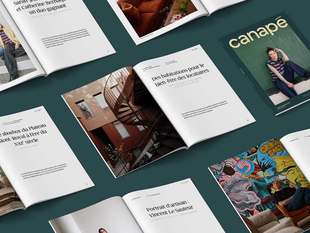 Le magazine Canapé promeut des sujets pertinents, tangibles et universels touchant de près ou de loin l’univers du design intérieur en les habillant d’une touche d’accessibilité et de durabilité. Notre objectif est de vous interpeller par nos contenus, mais surtout de vous inspirer par la beauté de ce qui vous est présenté.